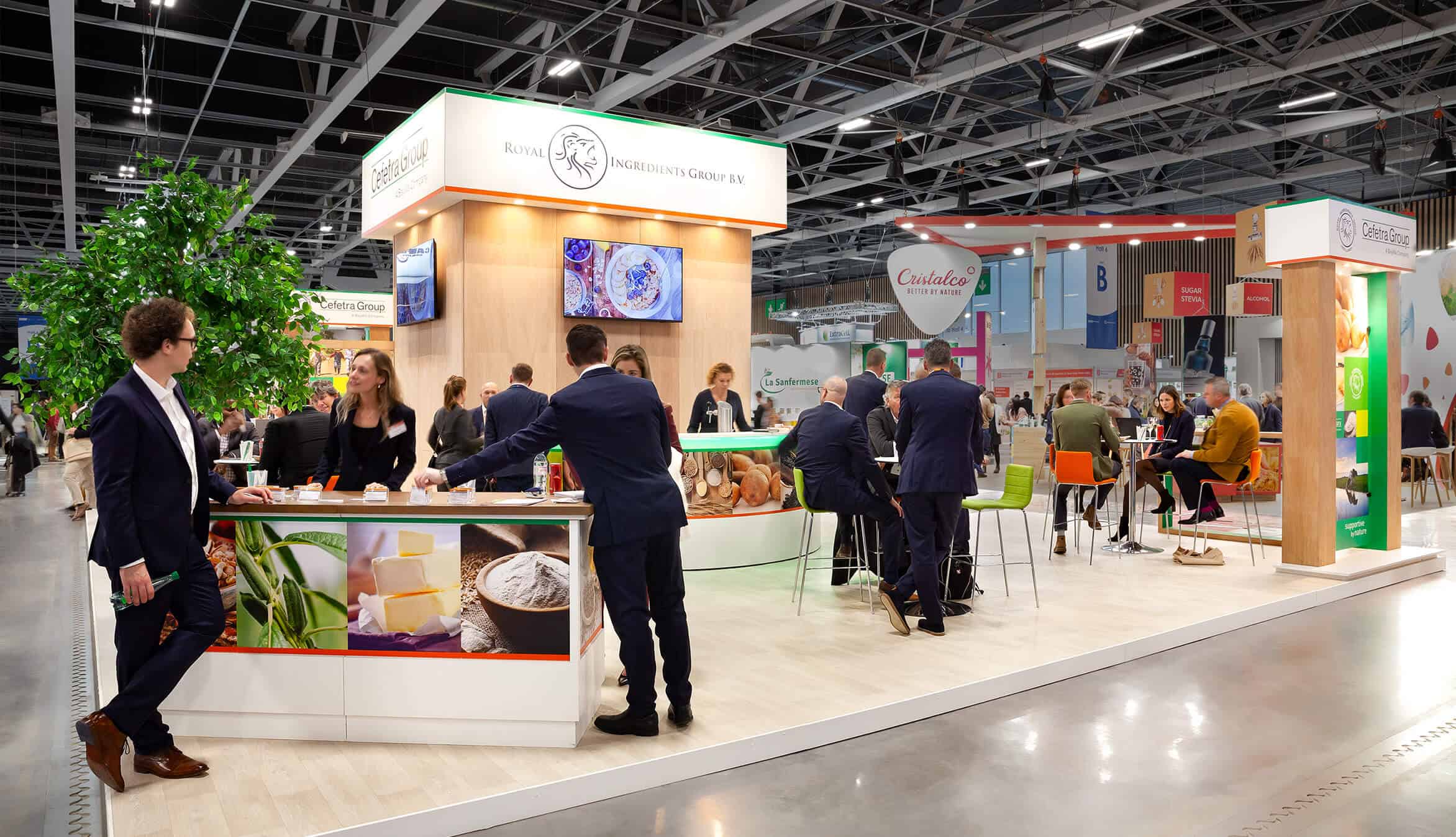 De beurs ‘Food Ingredients Europe’ is een belangrijke beurs voor fabrikanten en leveranciers in de voedingsindustrie. Met de groei van Royal Ingredients Group werd het tijd om voor het eerst deel te nemen aan deze beurs, samen met Cefetra Group. Als je het doet, doe het dan meteen goed moeten ze gedacht hebben. Cherry ontwierp een vrijstaande stand van maar liefst 120 m2. In dit ontwerp zijn de wensen van de klant meegenomen zoals; informatiebalie, ronde bar, twee spreekruimtes, grote berging en voldoende zitjes. Ook de grafische prints en decoratieve invulling van productpresentaties werden door Cherry verzorgd. Dit inclusief transport, opbouw en oplevering in Parijs!