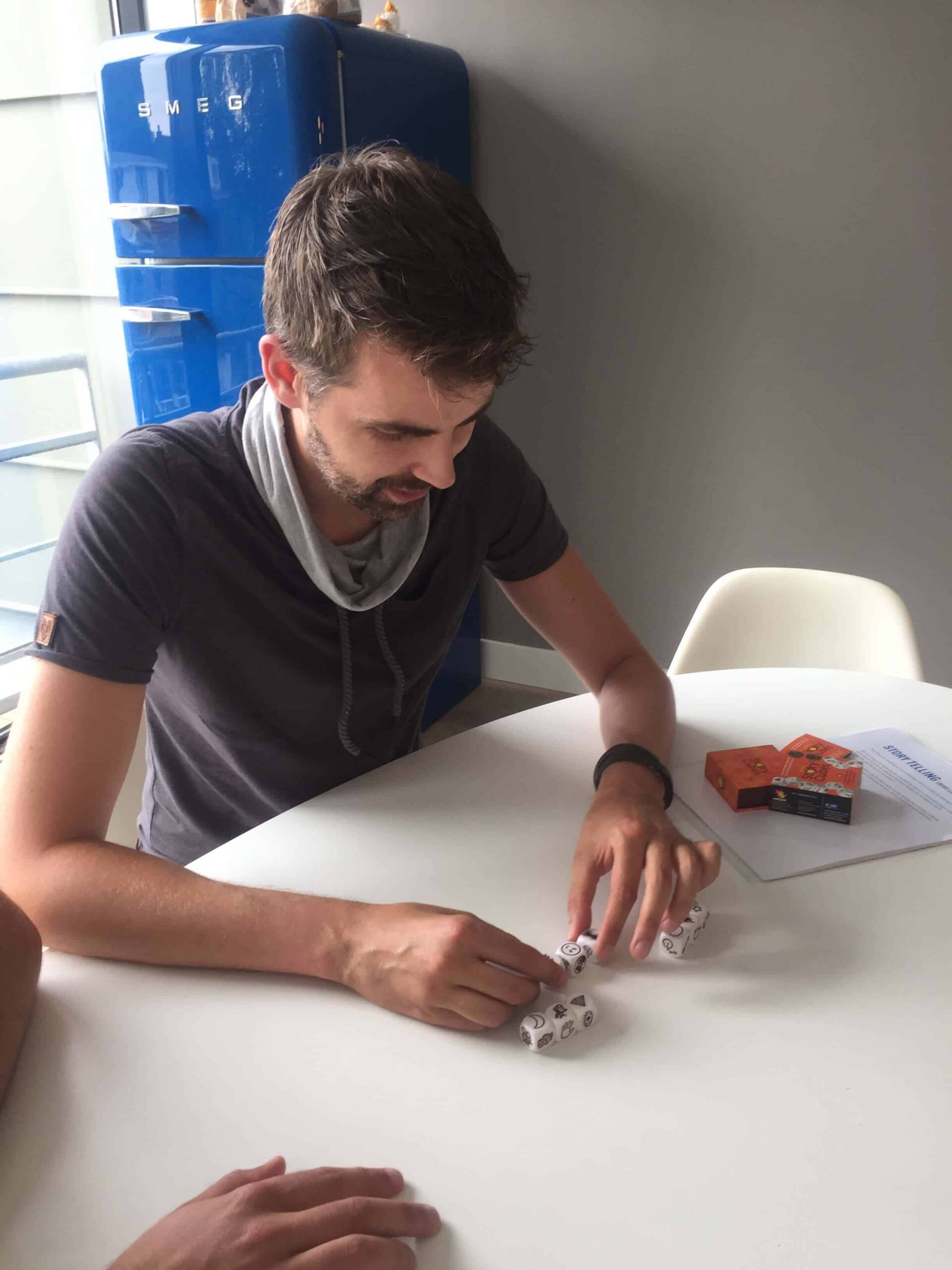 - Als laatste de retrospective. Dit is een stukje teambuilding wat plaatsvindt na de Sprint Review op vrijdagmiddag. Deze bereid ik voor, ik bedenk opdrachten en tijdens de retrospective doen we dit.”
