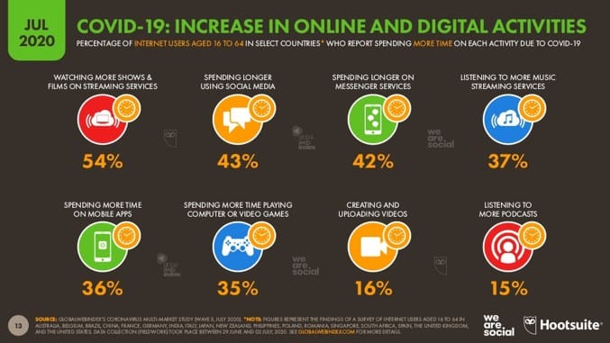 We zitten massaal thuis en hebben meer tijd over. Dit leidt tegenwoordig bijna automatisch tot een toename van social media gebruik. Helemaal in deze tijd waarin we op de hoogte willen blijven van het laatste nieuws. Veel mensen volgen het nieuws via social media, maar daar is natuurlijk niet alleen maar nieuws te vinden. Ons social media gebruik is sinds de pandemie explosief gestegen, blijkt uit onderzoek van Hootsuite. Onderstaand zie je de exacte cijfers.